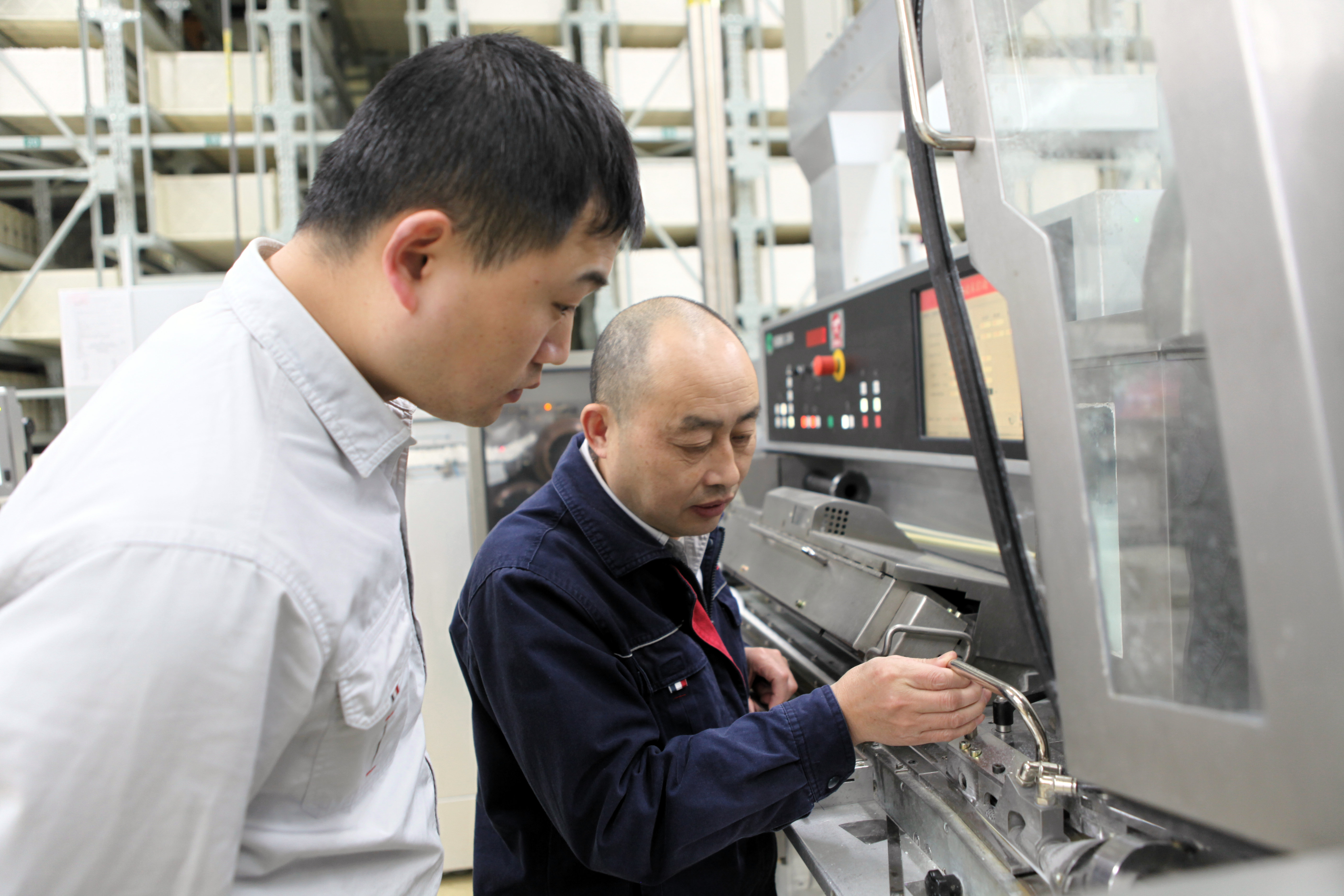 2023年以来,江西中烟工业有限责任公司井冈山卷烟厂发挥技师创新工作室引领作用,精心选派一批技术过硬、经验丰富、责任心强的技师“一对一”指导青年员工,助力青年员工早日掌握操作技能,在职业道路上健康成长。图为近日,技师蔡生良(右)正在给青年员工讲解zl26c成型机故障排除技巧。