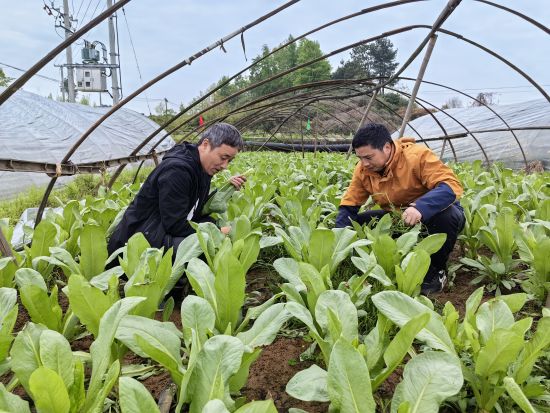 图为驻村队员帮助脱贫户大棚蔬菜采摘、除草